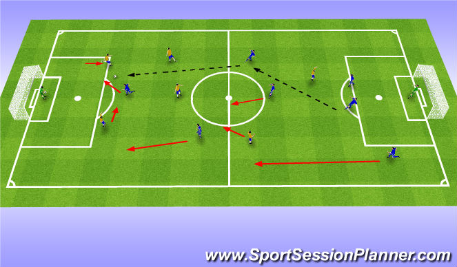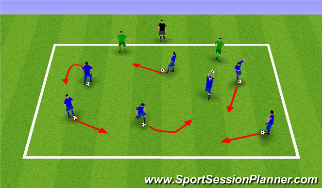 Free Play - Play 5 v 5 or 6 v 6 - Encourage learning outcomes from previous session parts.