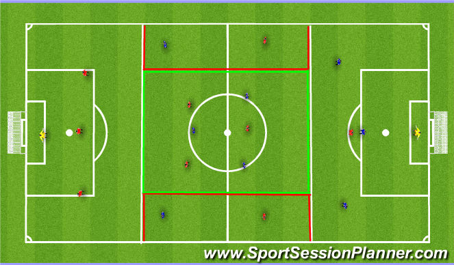 Whole-Part-Whole session, progressing on from last week's session based around forward players making opposition play predictable. This session, we will reinforce the key themes from last week, whilst working with midfield players and full backs on their screening/marking roles