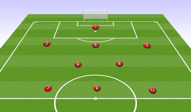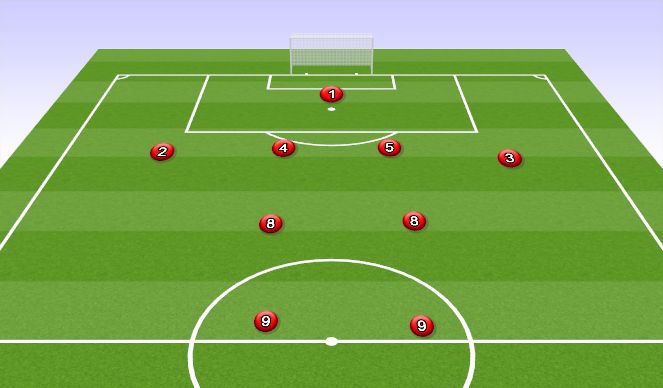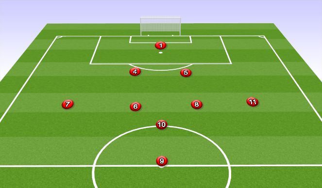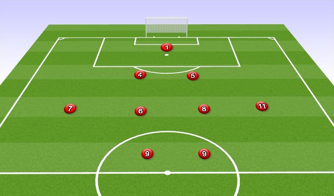 More of a defensive formation where you sit back more defensively and look to counter. Outside backs need to get up the field to provide width. Keep your forwards high to play off them and look to get into the space behind the other team you create through your low pressure.