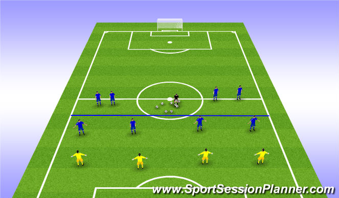 Tränare slår en boll i luften som backlinjen skall nicka upp i bannan. Då startar anfallet för försvarande och offensiv 4:a (Denna kan endast användas om spel kvaliten är så pass hög att det blir för lätt med pass från ledare.)