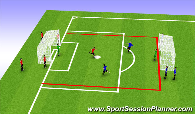 This exercise has an element of transition to it making it difficult because players must focus and realize the change in roles. In addition to the attacking task of trying to create a shot.