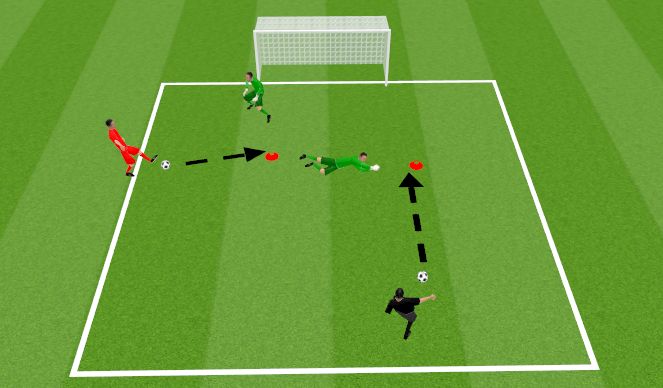 Once at the top, they get in their set position in front of the top cone and dive to the side they started their shuffling on