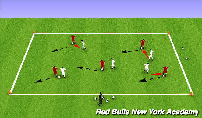 1. Objective is for the attackers to lose their defender. The objective of the defender is to stay as close as possible to the attacker. The attacker has a ball, the defender does not