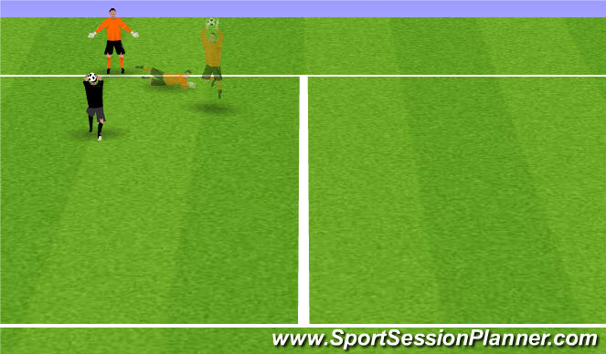 The drill begins with the GK coming out to server 1, whichever way server 1 turns either to the left or right, the GK will touch the ball and then retreat to that post. The server will attempt to toss the ball upper 90. Following the save, goal, or miss, the Server on the side that Server 1 turned too will fire a shot near post, again the GK job is to try and make the save using the front hand.