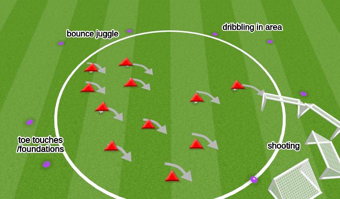 -dribbling close and also with speed, head up, control of the ball, GK hands, technical shooting demos, follow rules!!!! COUNT OUT THE 3-5 SECS