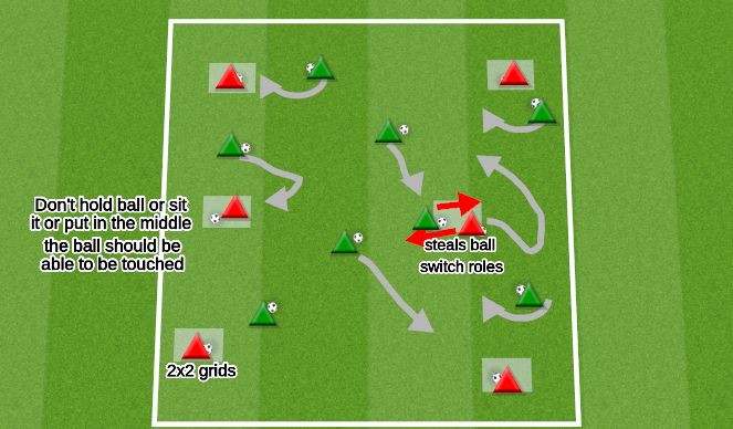 Coaching points- head up, close control, different surfaces, short vs long touches, technical passing