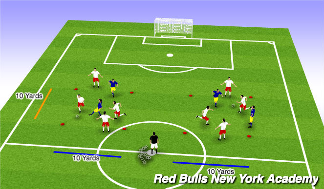 - Defender who has been in longer goes out when attackers lose possession or defenders win the ball (change this rule to whichever defender wins the ball gets to become an attacker to increase defensive intensity from both defenders - you defend until YOU win the ball).