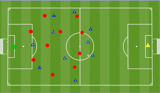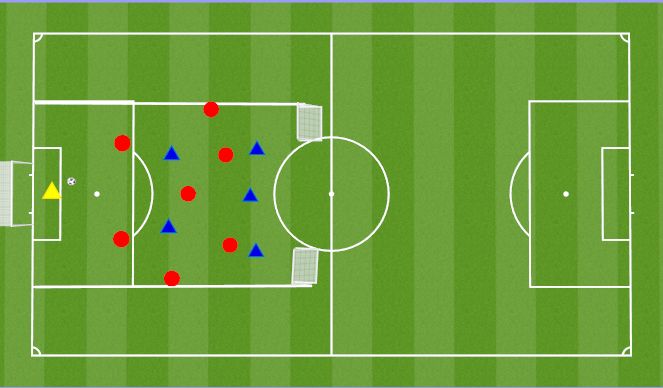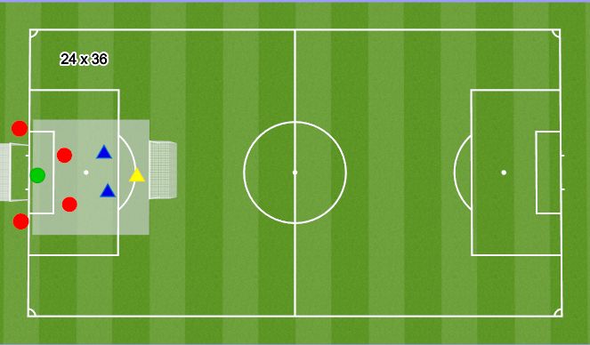 6 v 6 - Both teams attack mini goals - 3 consecutive restarts for red when not enough reps are provide.