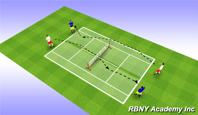 - Player D will collect the tennis balls and passed to player C, so players are ready for next sequence.