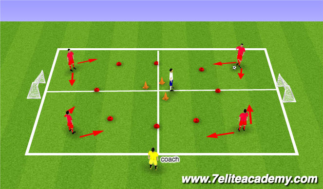 Conditioned Rondo Game small group of 5 can be adjusted to 6 or 7 depending on players and grid size.