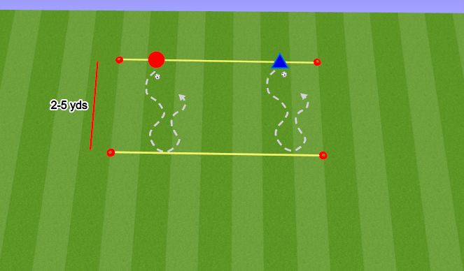 - Various players dribble their ball in both directions around a square (5 yds per side), going continuously into and then immediately out of it, using either foot. The goal is to avoid a clash with other players who dribble in and out of the square in the opposite direction.