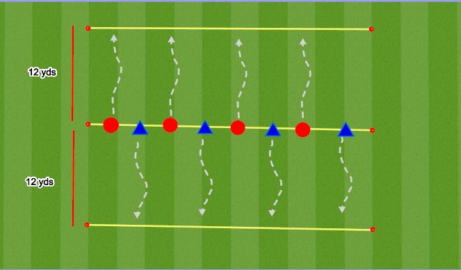 -Every time the coach gives a visual signal, each team's players run (without, and later with the ball) toward the next square, keeping control of their ball.