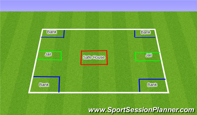 - If tagged by police officer you are to place piece of equipment you are carrying/or not carrying where you are tagged and go to a jail and carry out the given excercise by the coach (i.e. 10 toe taps, 10 knees to chest, 10 burpees, sprint on spot for 10 seconds).