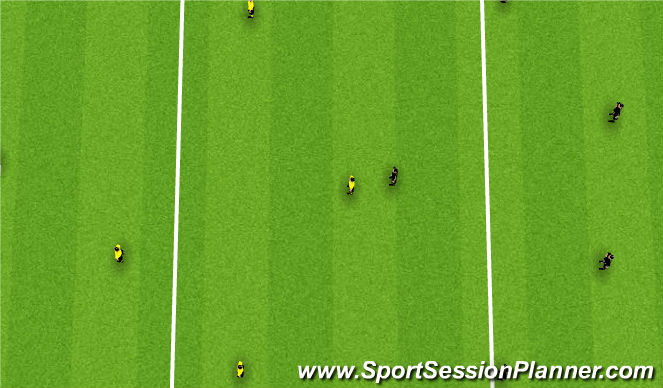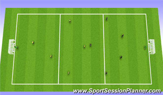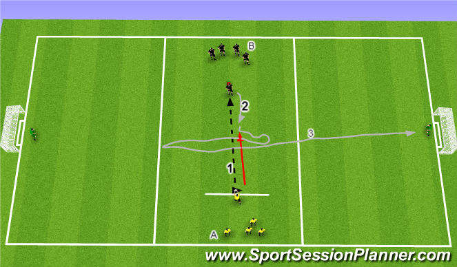 B has choice of either goal to score while A tries to defend and steal the ball after which A can score.