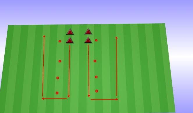 Cones 5 yards apart. Working pairs. 2 times through jog back