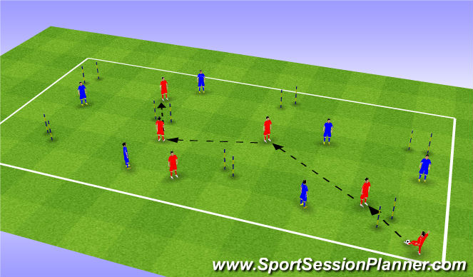 If drill is too hard, split players into 3 teams and have one team on the outside as common players for wall passes - swap teams regularly.
