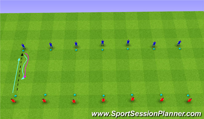 Player 1 passes to player 2 and sprints after it. Player 2 starts dribbling towards Player 1's cone. Player 1 jockeys player 2 all the way back to the cone without tackling. Swap roles.