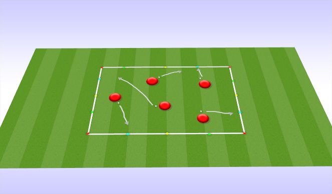 The box can be one colour however in this drill, the box is multi-coloured but in order eg. Red cones in the corner, then green, then yellow, then blue and then back to red.