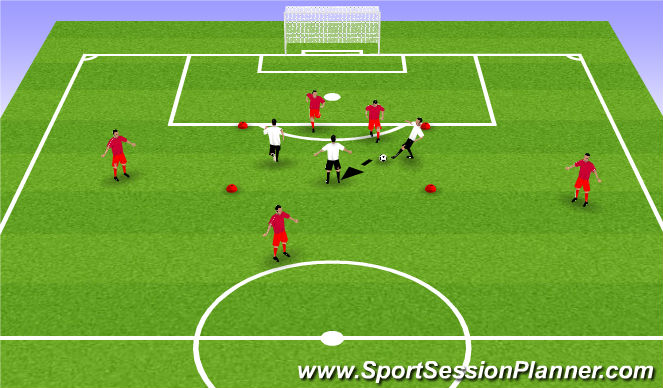 3 v 2 plus 3 in tight area top of the box. defenders are defending the line. Attackers ttry to break the line in phase one.