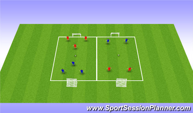 Let them play: split players into even teams 2v2, 3v3 or 4v4. Use 2field if needed. Coaching Points: Players will develop a naturalunderstanding of the game playing in a small sided controlledenvironment.