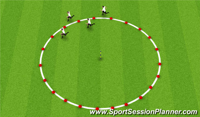 **Poteau jaune sera placé au milieu... au sifflet les joueurs doivent accelérer et toucher le poteau et retourner entre les cônes.
