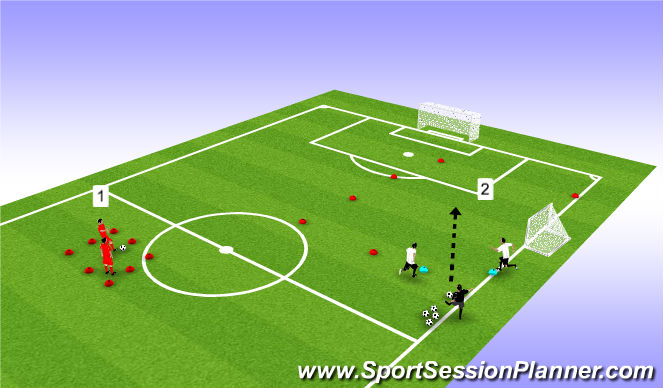 Entrainement technique basé sur... 1. la rapidité du touche de balle, 2. travailler le pied faible, 3. comment protéger soi-même et le ballon vs. joueur adverse.