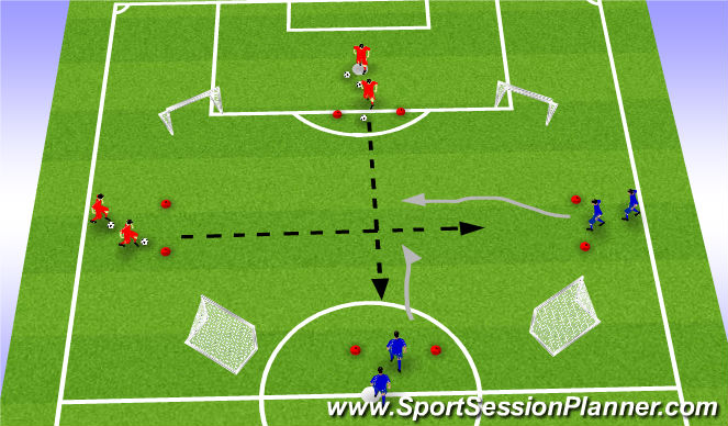 - Coaches pass the ball diagonally across always alternating and players finish off 1 - touch