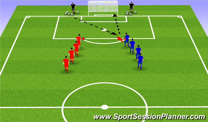- After players shoot, they sprint to the goal and become the goalkeeper