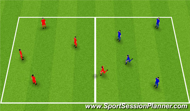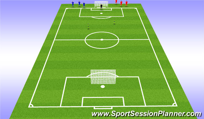Players position themselves at the 2 end cones and then in the middle of each set of 2 cones.