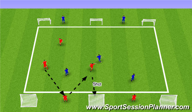 Team in possession must play to striker who lays it off for a teammate to finish first time in any of the 3 goals