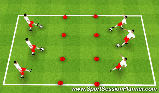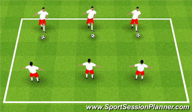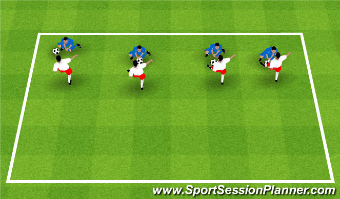 ball per two players (for best results use a ball for each player). On command,each team tries to keep it's side free of balls by kicking through the neutral zone to the opposite side. Play for a specific time limit.