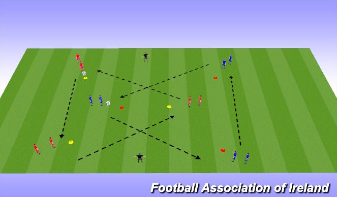 Game; Before receiving the the ball scan and nominate a colour marker held up by the coach then with a good 1st or 2nd touch pass the ball to that teammate who has scanned and nominated a colour for his passing sequence.