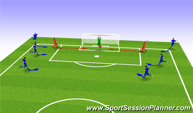 Progressions- Players in Blue - Different positions- start at corners then move on to outfield crosses.