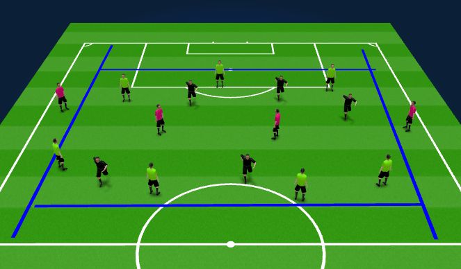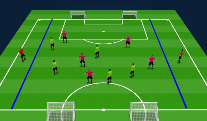 Half field scrimmage. Use philosophies and patterns or play. Create an attack with off ball movements and using the space provided by the defending team. Be creative and take chances.