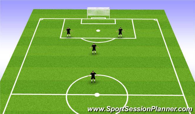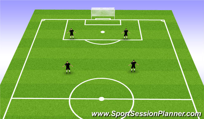 These are 3 common formations to use in a 4v4 set-up, these shoud be considered for long term player development not short term results. The spaceing of the players can be emphasized during scrimmage at the end of training. For Example: give bonus points to the team that can organize the fastest into a square or diamond, this allows the players to make the decisions themseves and then you can start play, from the desired starting position.