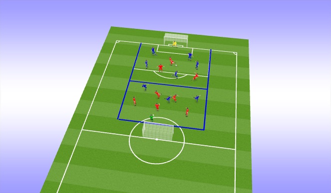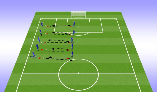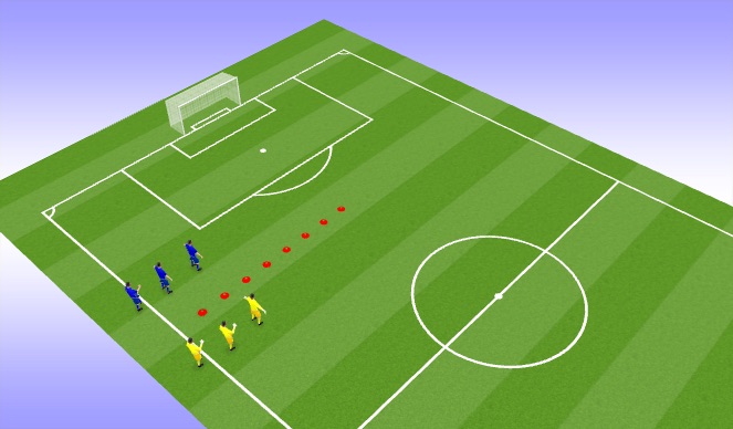 Objective is to get used to direct the shot from outside of the 18 box, looking at the goalie position before striking the ball.