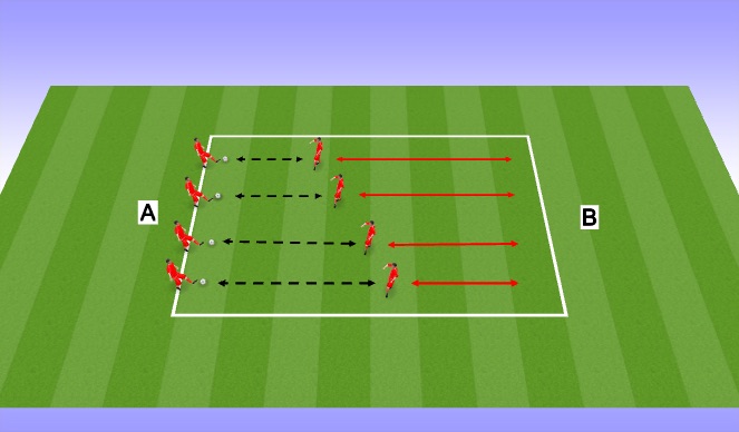 Once player B has reached his line, player A will work forwards towards B (repeat).