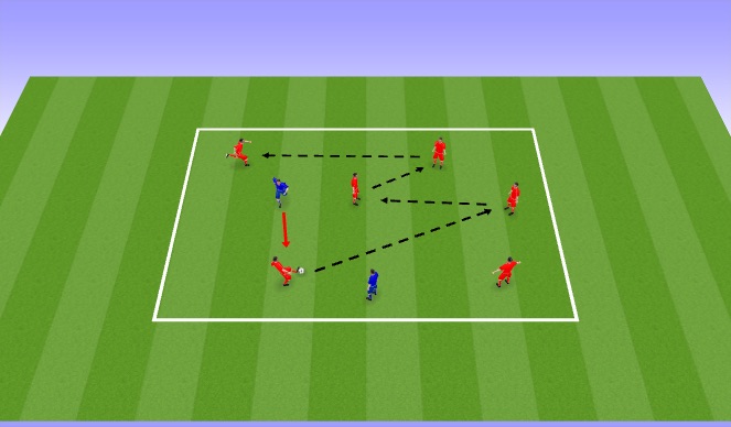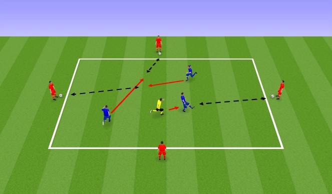Using 1 ball, players in the middle try to combine with each other before the ball gets passed back outside the box.