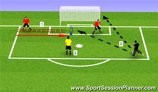 1-El Portero realiza escalera de coordinación lateral y termina saltando el obstáculo.