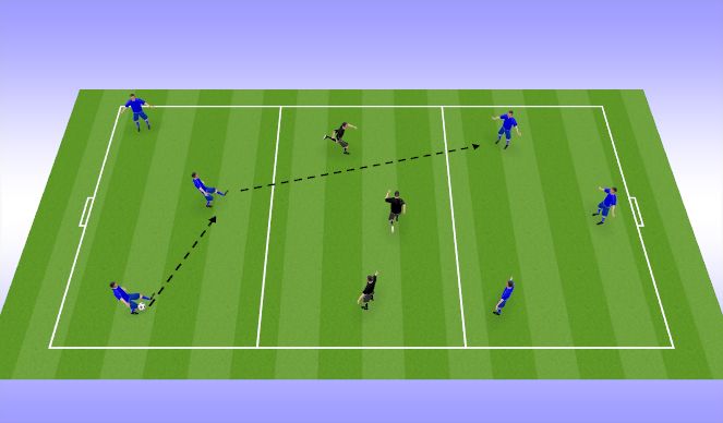 Attacking blue teams begin with possession at one and must create an opportunity to play the a pass