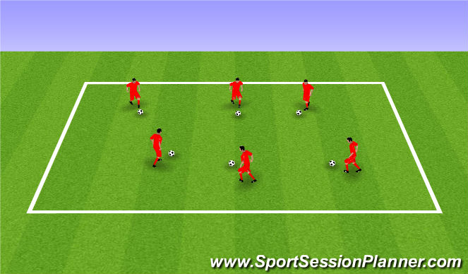 Instructions: players dribble in the grid and execute different moves communicated by the coach. For example: Inside outside. boxes. toe taps.