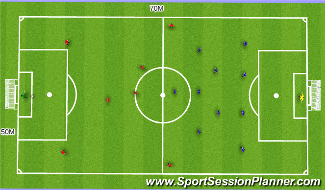 Aim:Players focussing on switching the ball early and quickly. All players taking responsibility for communication. To try and move the ball as quickly and as accurately as possible from one side of the field to the other.