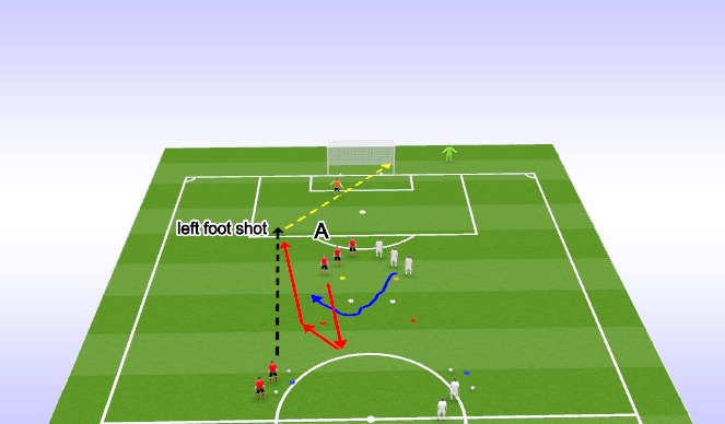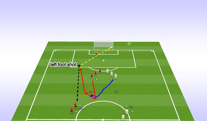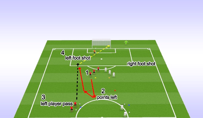 3 - the left passer will play a through ball down the outside, (if he points right then the right passer will play the through ball down the outside. The striker must trigger the pass by turning sharply (the pass is played at this point) and runs through to...
