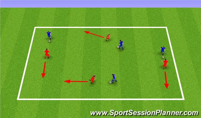 > player with ball must dribble towards defender moving ball from side to side changing direction of ball & body quickly.