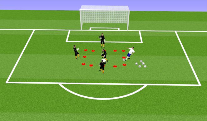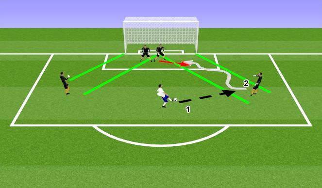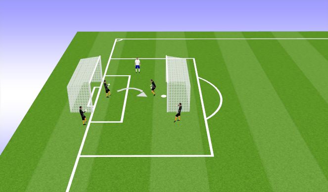 gkc pass to gk2 he start a dribbelling to the goal, gk1 close disstance & start 1v1 situation 3 times and swich