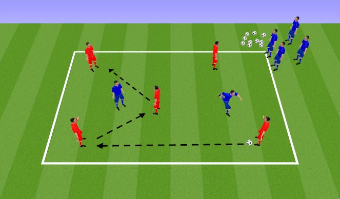 1. Players on the outside must pass the ball keeping the ball away from the 3 defenders in the middle.