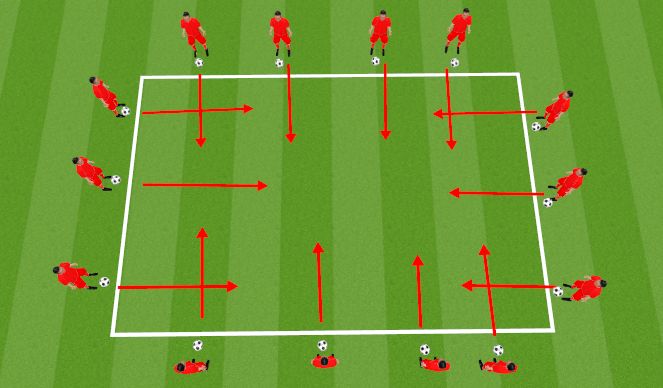 1. On coaches command "Go!", the players try to dribble to the opposite side of the grid without running into another player.