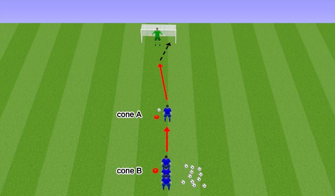 2. On coach's command "GO!", the player at cone A will start a breakaway towards net.