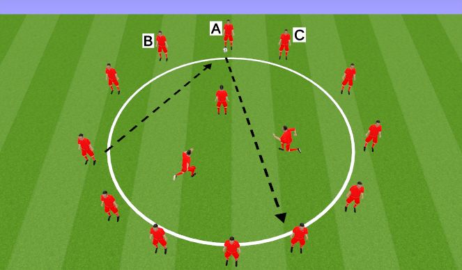 4. If player A makes a mistake by passing to player B or C, or if a defender intercepts the pass then player A , B and C replace the 3 defenders in the middle.