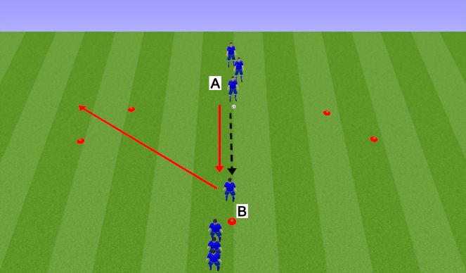 1. Player A passes to player B and runs in and applies pressure on the ball.